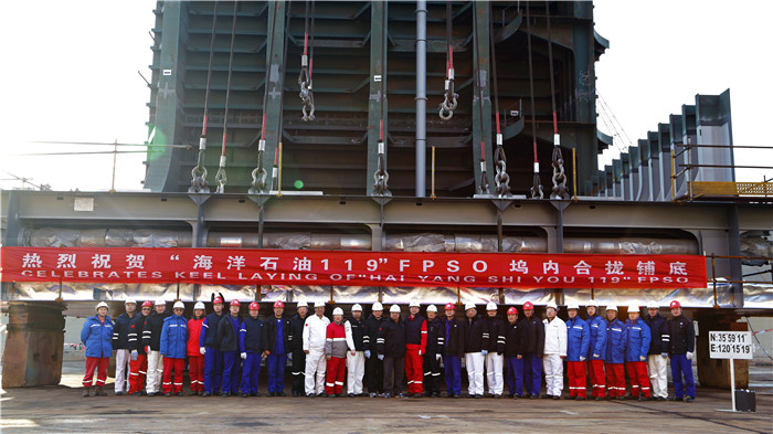 12月31日下午,北船重工新承接的流花16-2油田群開發(fā)項(xiàng)目“海洋石油119”FPSO船體建造工程在造船1號塢按期合攏鋪底。這是北船重工繼2007年成功交付10萬噸級海上浮式生產(chǎn)儲卸油船“海洋石油115”之后,時隔11年重新進(jìn)入FPSO新建造市場。該工程于今年6月簽約、開工。北船重工為此專門成立了流花FPSD項(xiàng)目部,嚴(yán)格按照生產(chǎn)節(jié)點(diǎn)計(jì)劃,抓好工程安全和質(zhì)量工作,并定期組織周檢、月檢,實(shí)施HSE管理創(chuàng)新工程,嚴(yán)把質(zhì)量制造關(guān),確保了工程順利推進(jìn)。北船重工副總經(jīng)理鮑會勇和業(yè)主、總包方代表,CCS船級社代表、BV船級社代表,以及部分造船部門的領(lǐng)導(dǎo)和職工出席了開工儀式。