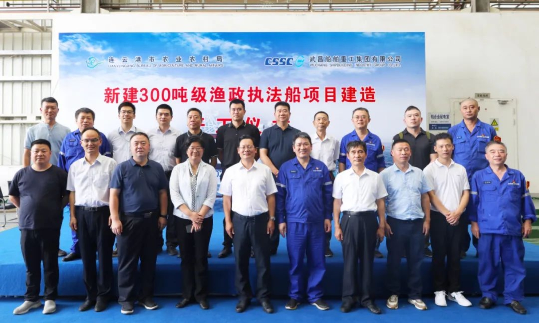 開工儀式在武昌造船雙柳廠區(qū)鋁合金車間舉行,連云港市政府副秘書長張永華、連云港市農(nóng)業(yè)農(nóng)村局局長陳鳳,連云港市財政局副局長韓加兵,連云港市海洋與漁業(yè)綜合行政執(zhí)法支隊支隊長張長春,武漢船舶設(shè)計研究院有限公司執(zhí)行董事黃俊,武昌造船黨委委員、總會計師陳仲明及各單位相關(guān)領(lǐng)導(dǎo)出席開工儀式。