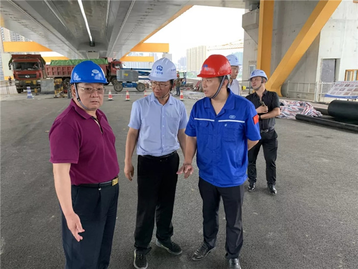 楊泗港大橋作為武漢軍運會重點項目,目前已進入最后沖刺階段,為確保該項目持續優質、高效、安全推進,近日,武船集團黨委副書記、工會主席楊少稀,副總經理田軍先后到楊泗港大橋項目部工地慰問、檢查指導工作。