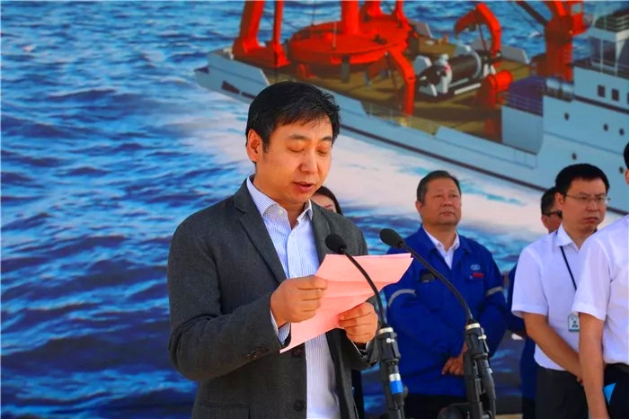 王渭齡在致辭中說,武船集團與國家海洋局已有30余年良好合作歷史,批量交付了科學考察船、大型巡邏艦等多型公務船。該船下水前160項CCS報檢項目和278項船東報檢項目均順利通過驗收,各項質量指標均達到或超過規格書要求。武船集團將科學組織好后續系泊試驗和航行試驗工作,向老顧客、老朋友奉上一艘可靠、先進的精品船,為國家海洋維權執法、海洋科學考察事業做出新的更大貢獻。