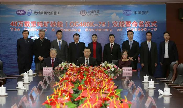 王國海在致辭中指出,今天是改革開放40周年紀念日,在這個美好的日子,各方來賓歡聚在美麗的青島西海岸,共同見證武船集團北船重工和中國船舶重工國際貿易有限公司為工銀金融租賃有限公司建造的40萬噸超大型礦砂船7號船交船暨命名儀式,共同為改革開放40周年獻禮。40萬噸礦砂船7號船是武船集團為工銀租賃交付的第三艘船,建造過程中,在船東、船級社等各方的共同幫助和努力下,調配優質資源,組建專業化的項目管理團隊,秉承工匠精神,持續優化建造工藝,改進生產流程,提高生產效率,夯實產品質量,提高出塢完整性,實現了碼頭舾裝調試周期63天的系列船碼頭周期最短的記錄,航速、油耗等各項指標全部達到或超過合同和設計要求,為船東打造了又一艘具有優良經濟性和環保性的高品質船舶。船舶交付后,武船集團北船重工將全力做好交付船舶的售后服務和后續船的建造工作,并乘改革開放40年的東風,與工銀租賃一道,攜手并進,共謀發展,共同續寫互利共贏的華麗新篇章。