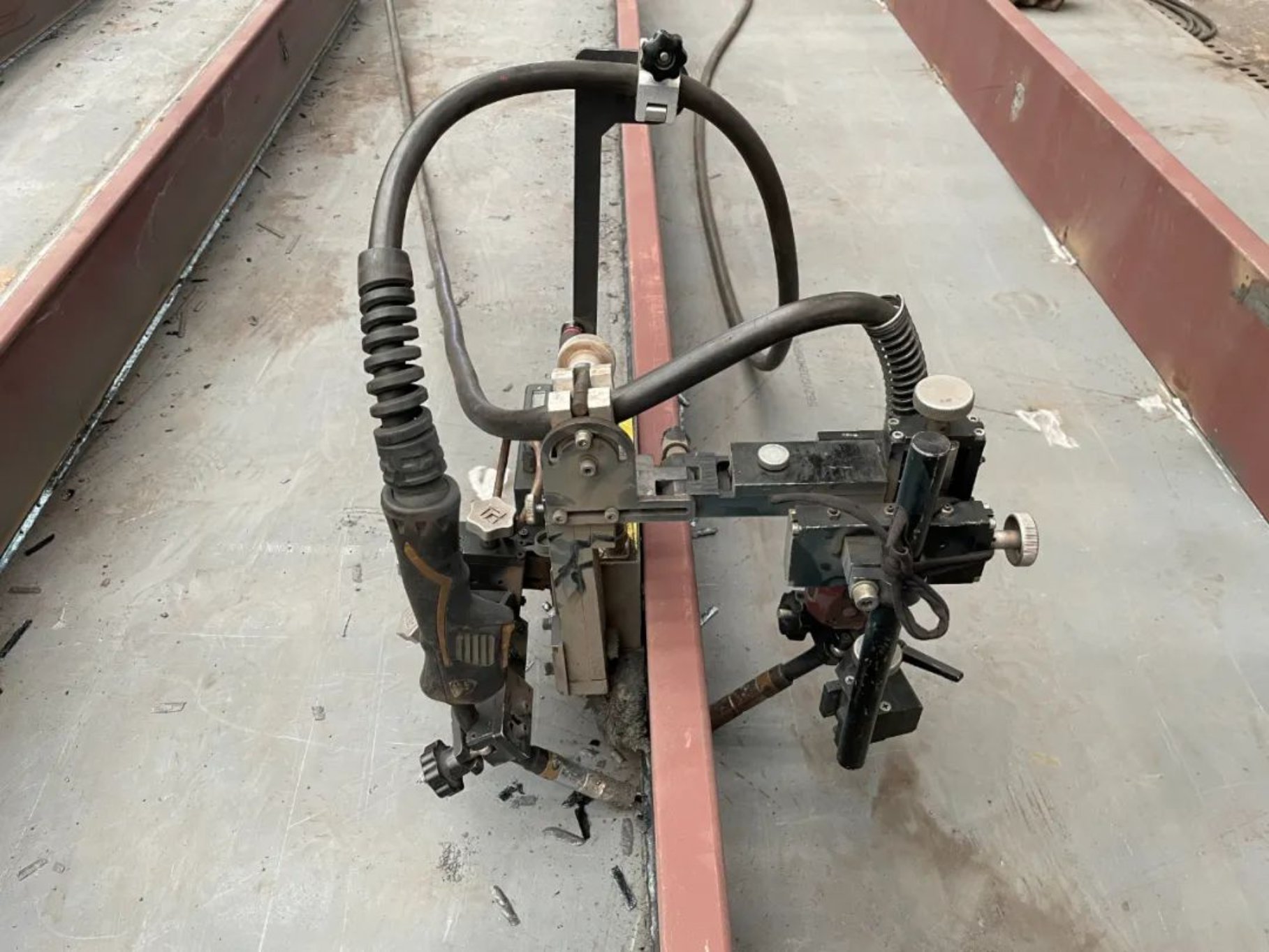 在甲板型材結構上的開孔,會影響角焊小車無法連續施焊,需事后人工進行修補。經過集思廣益,大家對角焊小車設備進行了簡易改裝,改變其行走限位輪的高度,保證了角焊小車在行進過程中的連續性,省去了后期人工補焊、打磨等工時的消耗。”