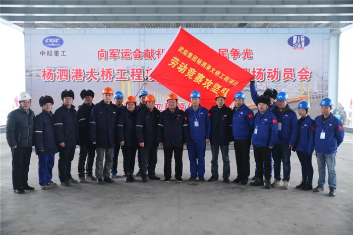 武漢市總工會黨組書記、常務副主席王芳,武船集團黨委副書記、工會主席楊少稀出席啟動儀式,并授予武船楊泗港大橋項目部“勞動競賽攻堅隊”旗幟。本次活動旨在全力推進大橋建設速度,掀起了大干快上熱潮,加快推進楊泗港大橋項目建設。