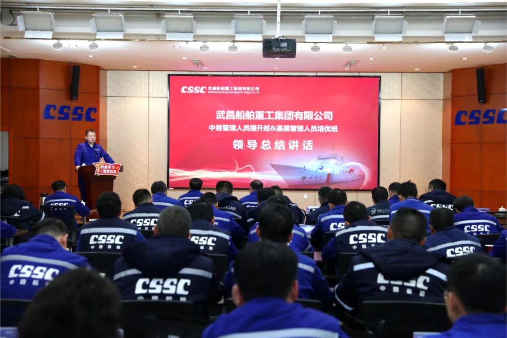 12月14日,中國(guó)船舶集團(tuán)武昌造船首屆中層管理人員提升班、基層管理人員培優(yōu)班結(jié)業(yè)典禮在創(chuàng)新樓12樓武船講堂順利舉行。公司黨委書(shū)記、董事長(zhǎng)姜濤,黨委委員、副總經(jīng)理田軍,黨委委員、副總經(jīng)理、總工程師唐瀅出席結(jié)業(yè)儀式,培訓(xùn)班全體學(xué)員參加結(jié)業(yè)典禮。