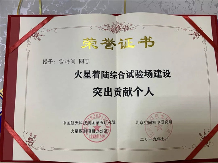 ▲武船集團(tuán)重裝公司火星著陸綜合試驗(yàn)場(chǎng)建設(shè)施工項(xiàng)目總指揮雷洪洲榮獲“火星著陸綜合試驗(yàn)場(chǎng)建設(shè)突出貢獻(xiàn)個(gè)人”