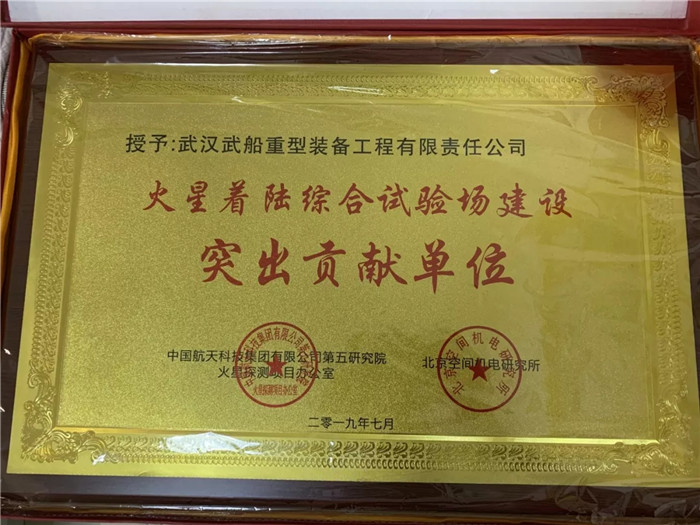 ▲武船集團(tuán)重裝公司榮獲“火星著陸綜合試驗(yàn)場(chǎng)建設(shè)突出貢獻(xiàn)單位”