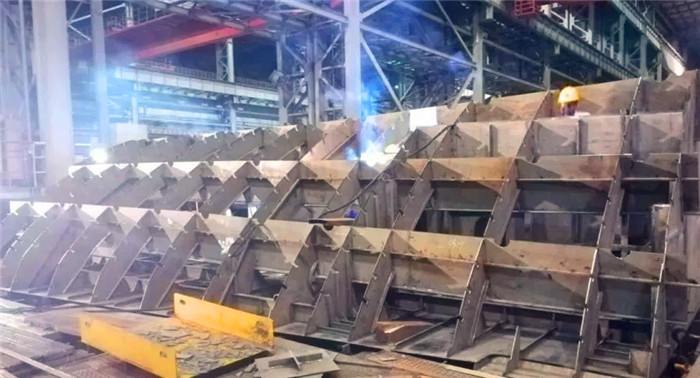 該首制分段為單殼體底部分段,結(jié)構(gòu)形式與往期產(chǎn)品相比變化較大,且工藝復雜。另外,本次施工屬異地作戰(zhàn),無論在資源調(diào)配還是與相關(guān)方的溝通協(xié)調(diào)等方面都存在不小的難度,而這些都是擺在項目部面前的巨大考驗。為應對上述工作難題,項目部高度重視,決心不惜一切代價也要按期、保質(zhì)完成生產(chǎn)任務。在項目部總指揮凌偉、副總指揮李強的統(tǒng)一領導下,項目部迅速加大了人力、物力及各項設備設施的投入力度,通過不斷優(yōu)化細化生產(chǎn)組織,制定科學有效的日生產(chǎn)計劃并狠抓計劃的落實,不斷加強對現(xiàn)場的溝通和協(xié)調(diào)等舉措,有效解決了工作中存在的諸多困難,打通了生產(chǎn)瓶頸,達到了“日事日畢、日清日高”的效果。