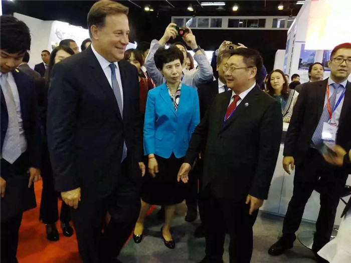 ▲2018年中國(巴拿馬)品牌博覽會上巴拿馬總統(tǒng)Juan Carlos Varela參觀展位