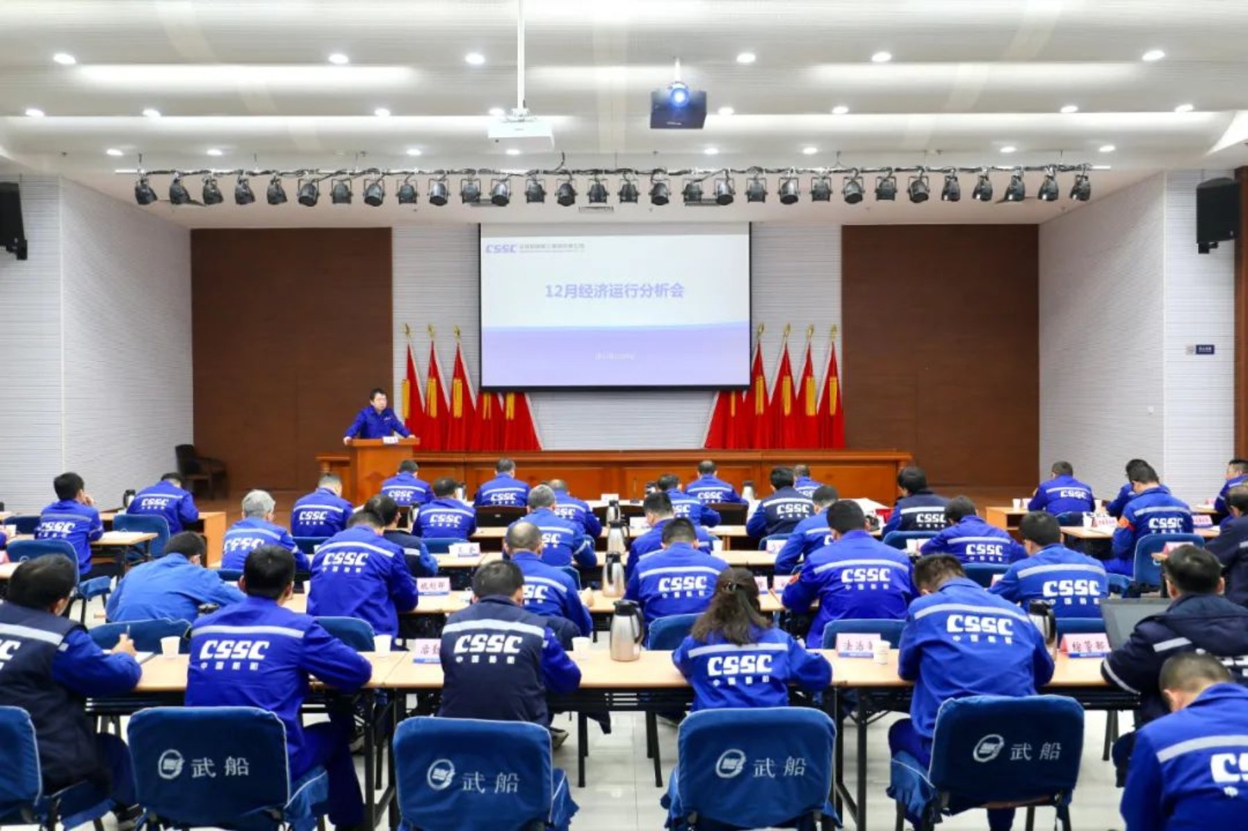 12月9日上午,中國船舶集團武昌造船召開2023年12月份經濟運行分析會。會議總結了公司11月份經濟運行、生產、經營情況,部署了下一階段重點工作。公司黨委書記、董事長姜濤出席會議并提工作要求,公司黨委副書記、總經理梁師清主持會議并進行工作部署,公司領導田軍、陳仲明、劉祎參加會議并講話。經營部等9家單位進行工作匯報。