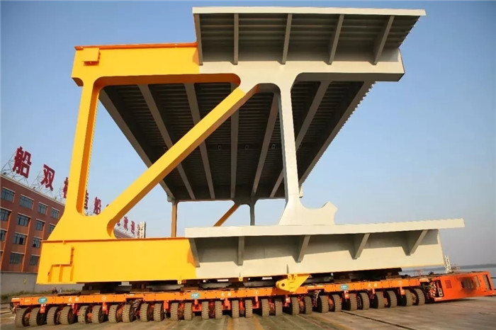 在發(fā)運(yùn)環(huán)節(jié),武船重工股份對(duì)船臺(tái)大排進(jìn)行了改造,優(yōu)化了節(jié)段下水方案,采用多軸組合式模塊車頂托節(jié)段滾裝上船,此舉為公司首次在長(zhǎng)江流域完成的超大型雙層節(jié)段橫向滾裝裝船。