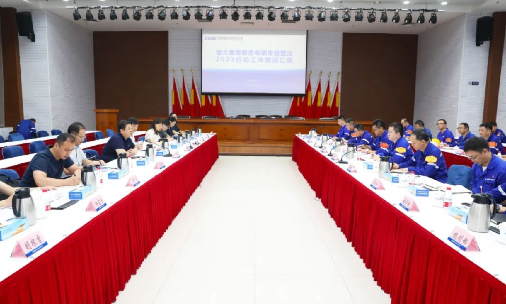 7月13日,國防科工局副司長丁向明一行到中國船舶集團武昌造船調(diào)研檢查安全生產(chǎn)工作,中國船舶集團公司質(zhì)量安環(huán)部有關(guān)領(lǐng)導(dǎo)參加調(diào)研檢查工作。公司黨委書記、董事長姜濤,黨委副書記、總經(jīng)理梁師清及相關(guān)部門負(fù)責(zé)人參加調(diào)研檢查。