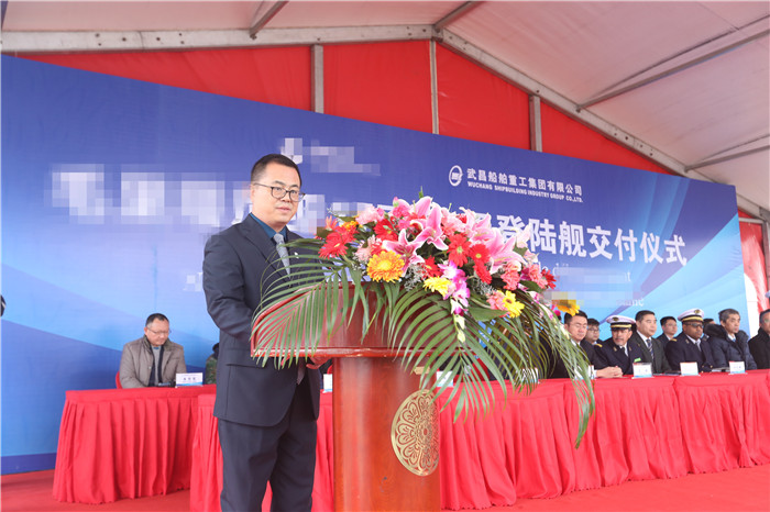 該國海軍參謀長一行、中船重工武船集團副總經理姚勝華及國內相關單位領導參加了交船儀式。