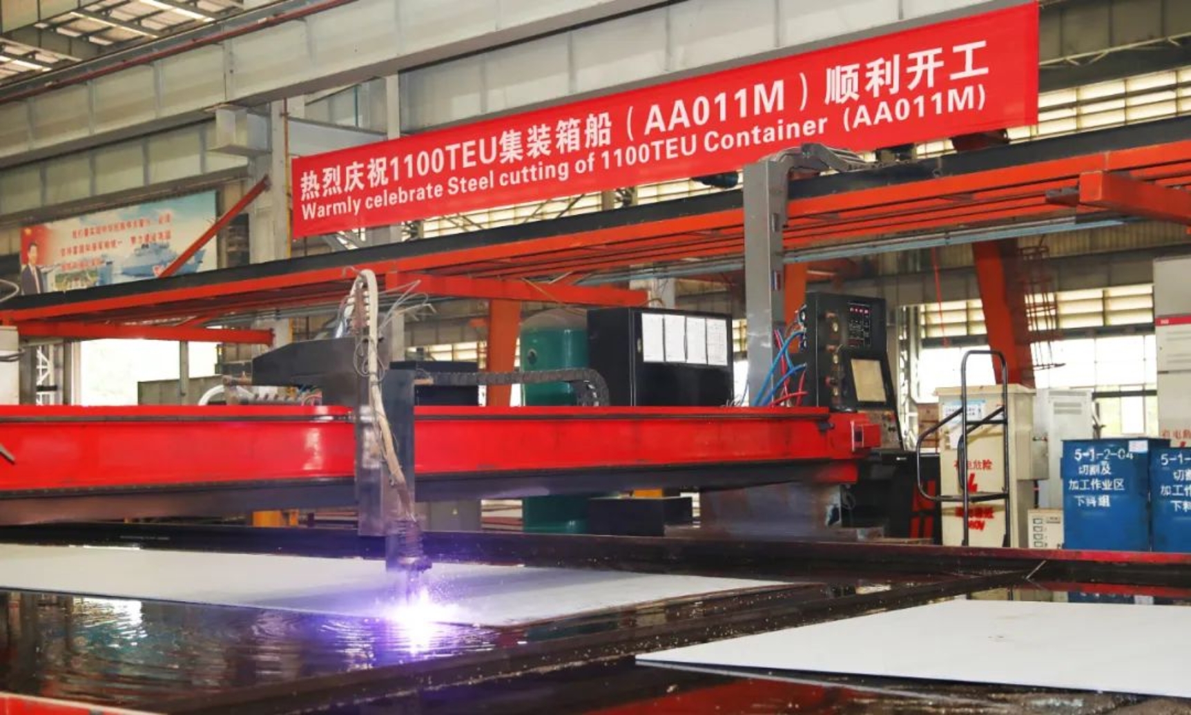 5月17日11時18分,武昌造船為希臘船東Cosmoship建造的1100TEU集裝箱船首制船在雙柳廠區(qū)順利開工。船東代表、BV船級社、中船貿(mào)易相關領導及公司相關部門代表、產(chǎn)品三總師參加開工儀式。