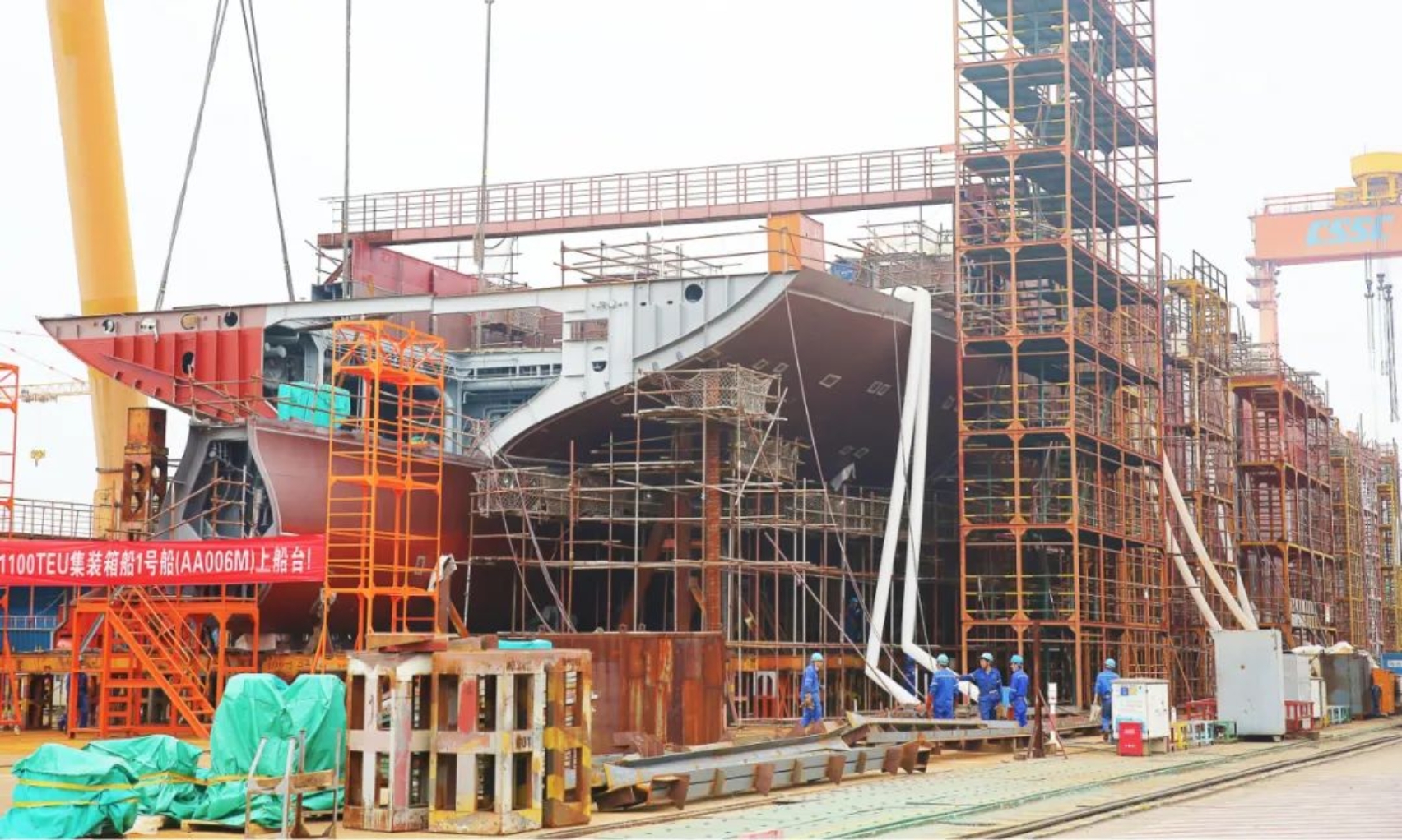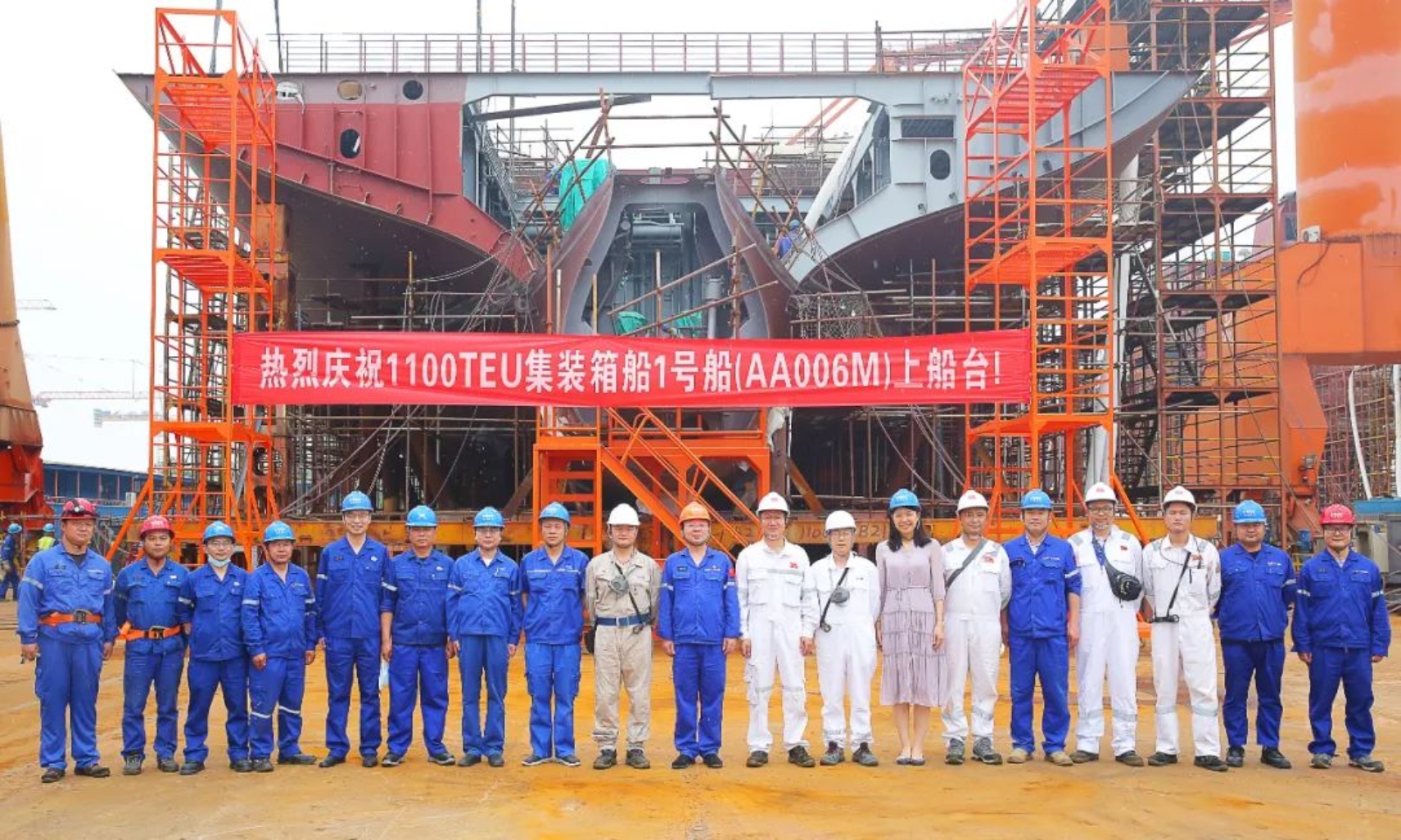 5月16日上午11時18分,武昌造船為CA Shipping建造的1100TEU集裝箱1號船在雙柳廠區(qū)順利上船臺,在船舶完整性良好的前提下實現(xiàn)計劃節(jié)點提前9天完成。
