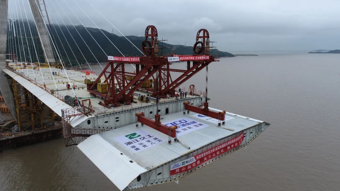 6月22日,中國船舶武船集團武船重工股份承建的舟岱大橋DSSG01標南通航孔橋最后一節鋼箱梁吊裝完成,精準落位,南通航孔橋率先實現邊跨合龍,較計劃合龍時間節點提前了6天。